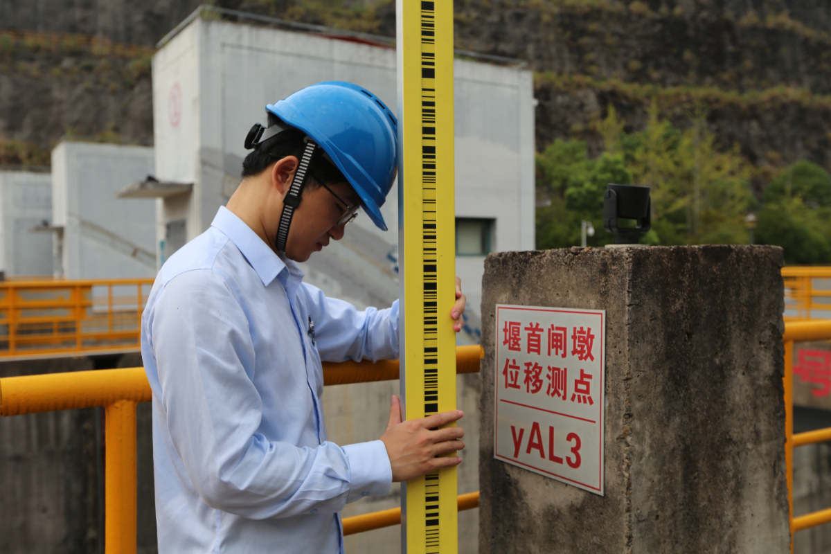 機組頂峰的響應迅速、組織有序、運行平穩,背后是一群水電人的嚴陣以待。早上5點30分,水工觀測班職工王琪、蔡建林、孫紀輝、朱鴻杰等青工已到達大壩觀測點,開始測量水工建筑物的各項維度?!疤嵩鐪y量,不僅可以減少氣溫、折光對測量誤差的影響,還能避免高溫作業。”蔡建林介紹說。