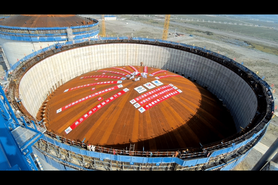 浙能六橫LNG接收站項(xiàng)目1號(hào)儲(chǔ)罐正在氣頂升。 劉莎 提供