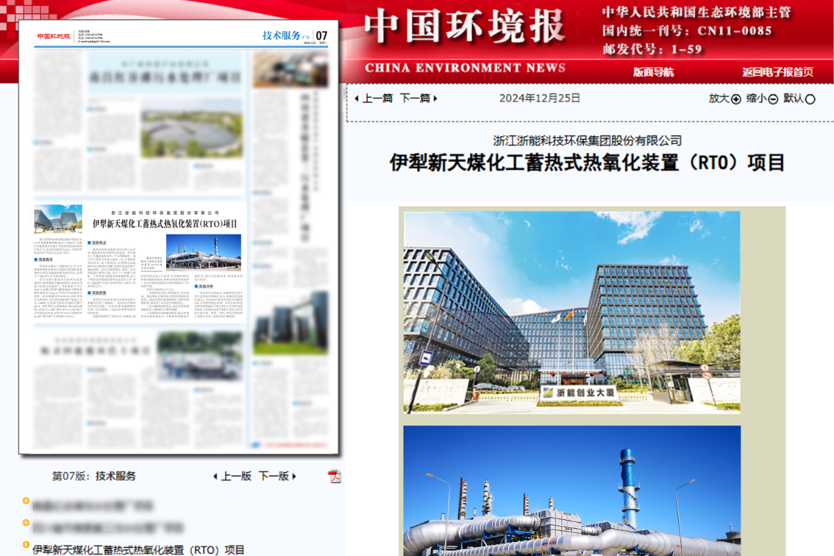 2024年12月25日《中國環境報》對浙能科環入選項目刊登公示。 浙能科環 提供