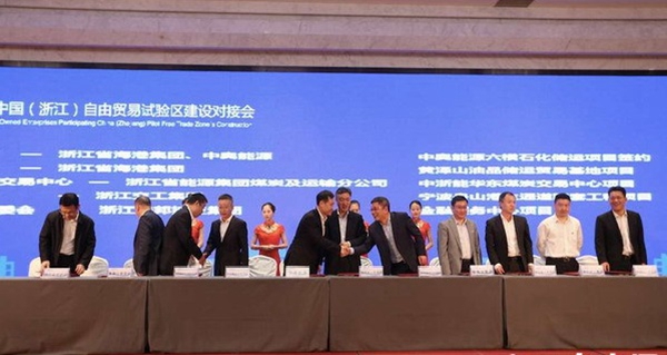 4月21日,煤炭分公司與中國(浙江)大宗商品交易中心在自貿區對接會上簽署戰略投資協議。 何玉輝 攝