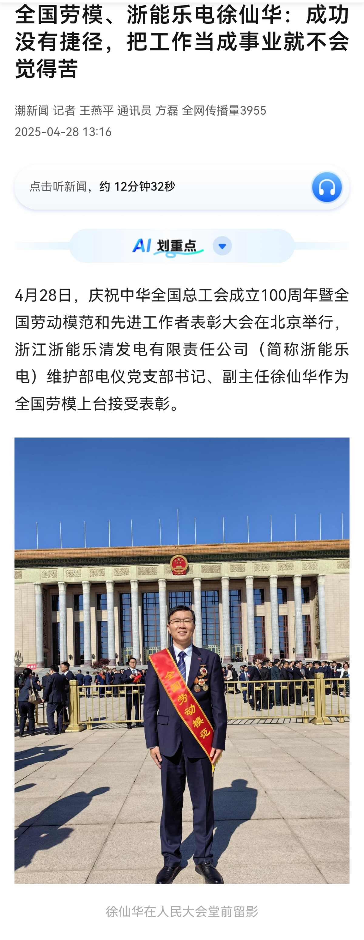 4月28日,潮新聞報道《全國勞模、浙能樂電徐仙華:成功沒有捷徑,把工作當(dāng)成事業(yè)就不會覺得苦》。 潮新聞 提供