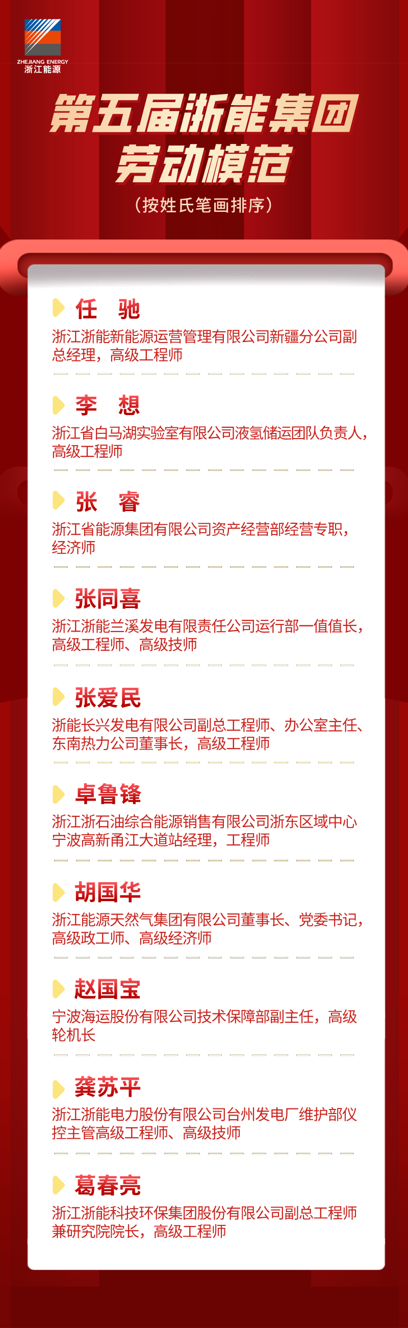 劉盛輝代表集團黨委向廣大勞模工匠和奮戰在集團各條戰線的勞動者致以誠摯的問候。他指出,集團二十余年的發展歷程,是一部全體浙能勞動者的豪邁奮斗史。廣大職工要堅定不移聽黨話、跟黨走,對標先進、看齊模范,加快打造高素質、能吃苦、肯奮斗的浙能鐵軍,以更大力度、更實舉措開辟集團能源高質量發展新天地,為全省經濟社會發展作出更大貢獻。