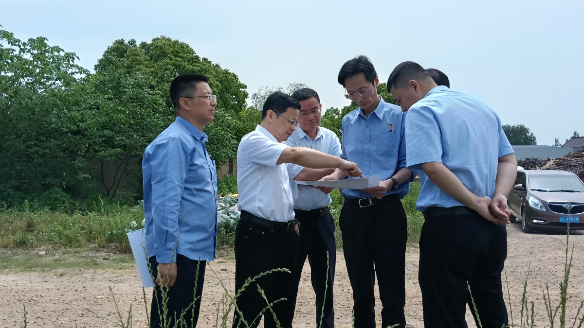 倪震一行踏勘浙能長電遷建項目廠址。 李雪峰 攝