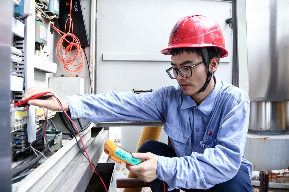 頭頂烈日,浙能燃?xì)馄胶緢稣具\(yùn)行人員顧不得擦拭頭上的汗水,對場站設(shè)備進(jìn)行全方面的維護(hù)和巡檢。 包融融 攝