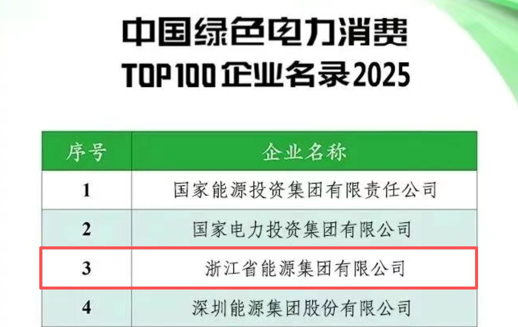 浙能集團入選中國綠色電力(綠證)消費TOP100企業(yè)名錄