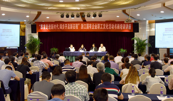 為學(xué)習(xí)貫徹落實黨的十九大精神,紀(jì)念改革開放40周年,5月26日,由浙能集團、西泠印社文化藝術(shù)發(fā)展有限公司承辦的“昂首走進新時代 闊步開啟新征程”浙江省國有企業(yè)職工書法培訓(xùn)班在杭州正式開班,為繁榮國資國企文化,豐富企業(yè)職工文化生活產(chǎn)生積極的推動作用。浙江省國資委宣傳處處長范紅出席開班儀式并講話。來自浙江省國有企業(yè)的200名職工書法愛好者參加開班儀式。集團政治工作部主任夏守慧主持開班儀式。
