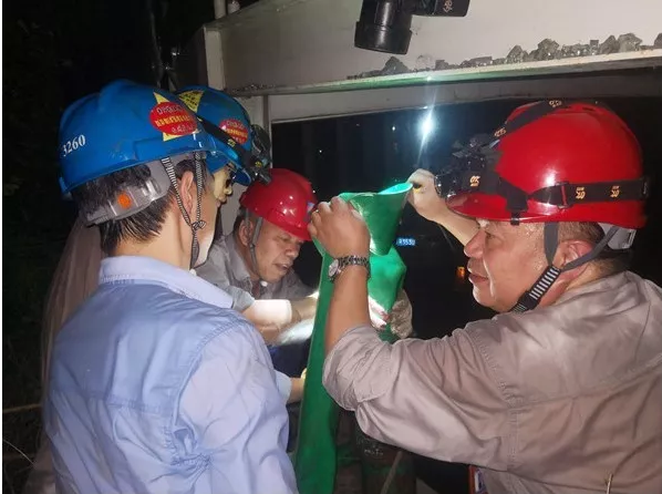 面對災情,浙能救援隊發揮電力人的專業優勢,裝潛水泵、水管,連接、敷設電纜線路,一氣呵成。17時30分,第一臺排水泵出水,19時30分,6臺排水泵投入排水作業,水位迅速下降。在悶熱的環境中,救援人員們個個汗流浹背,汗濕的衣服緊貼著后背,全身上下像在水里泡過一般,但沒有一個人叫苦叫累,也沒有一個人懈怠退縮。