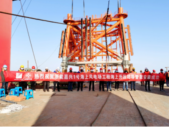 浙能嘉興1號海上升壓站導管架吊裝成功