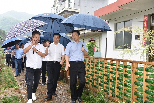 馮波聲冒雨考察了郭塘村光伏項目現場,參觀了郭塘村新建的便民服務中心,聽取了80畝月季花產業園的情況匯報,詳細了解郭塘村因光伏發電“消薄”項目實施而發生的全方位蛻變,親身感受著郭塘村將綠色環保融入“美麗鄉村”建設的發展新理念。