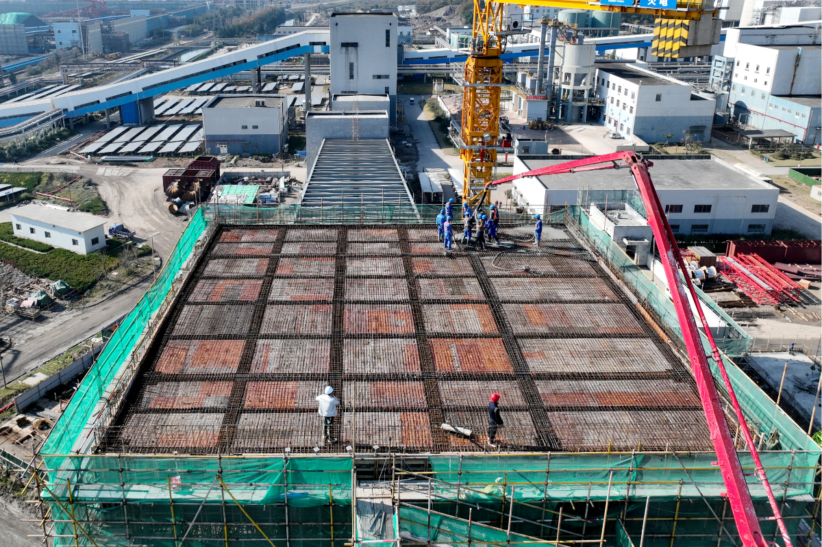 浙能六橫電廠二期工程實現(xiàn)碎煤機室屋面層封頂。 陳思穎 攝