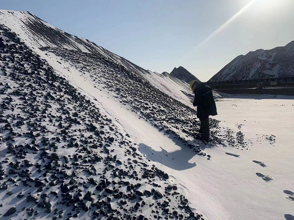 寒潮期間,浙能富興燃料公司北方辦工作人員日常巡查場地。 趙洪偉 攝