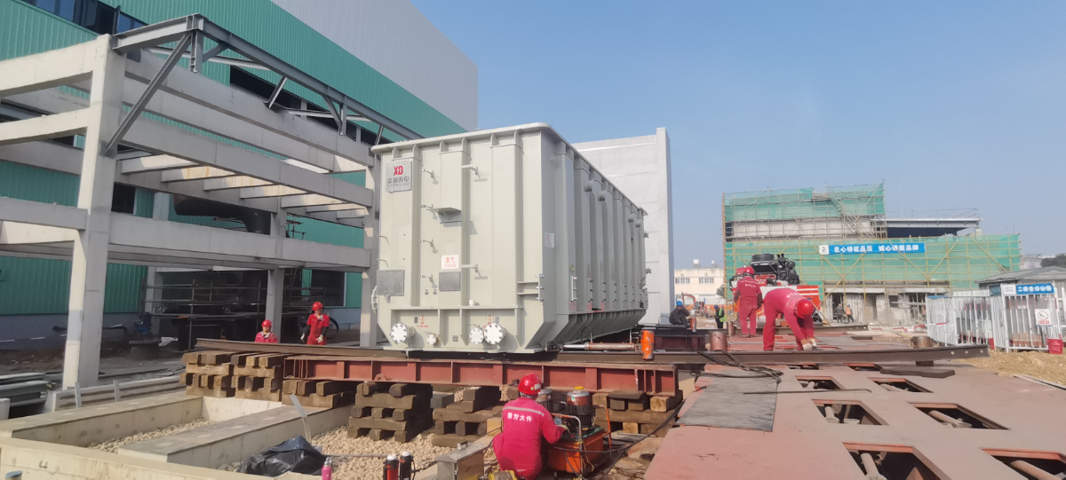 鎮(zhèn)聯(lián)電燃機異地遷建改造項目施工人員正進行主變設備安裝。 王向陽 攝