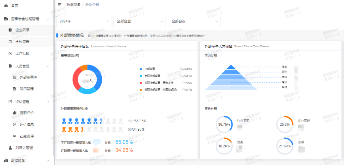 董事會運(yùn)行管理系統(tǒng)按省國資委管理要求研發(fā)部署,依據(jù)國資監(jiān)管機(jī)構(gòu)要求與企業(yè)章程,結(jié)合企業(yè)發(fā)展戰(zhàn)略和業(yè)務(wù)特點(diǎn),形成外部董事多維度畫像,深化預(yù)警提醒,前移監(jiān)督關(guān)口,可視化呈現(xiàn)各企業(yè)董事會建設(shè)、外部董事人才儲備等情況,實(shí)現(xiàn)預(yù)警在先、監(jiān)督有形,助力董事會規(guī)范性建設(shè)更高效、更智能。截至2023年底,董事會運(yùn)行管理系統(tǒng)已覆蓋省國資委及16家省屬企業(yè),累計錄入千余條會議數(shù)據(jù)與相關(guān)董事會議題數(shù)據(jù),以及百余條外部董事履職數(shù)據(jù),兼職外部董事庫中擁有百余位人才儲備。系統(tǒng)從使用便捷性、數(shù)據(jù)準(zhǔn)確性和數(shù)據(jù)實(shí)用性三方面著手,打造“好用、實(shí)用、管用”的董事會運(yùn)行管理數(shù)字化應(yīng)用。