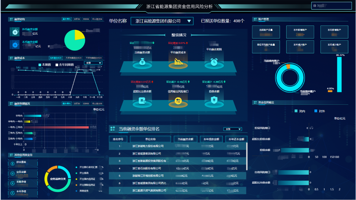 資金信用風(fēng)險管理系統(tǒng)分兩部分,一是部署于省國資委財務(wù)風(fēng)險監(jiān)測平臺下的資金信用風(fēng)險子系統(tǒng),應(yīng)用于省國資委及各省屬企業(yè),旨在加強(qiáng)國資國企資金信用風(fēng)險監(jiān)測;二是部署于浙能集團(tuán)的資金管理系統(tǒng),旨在提升資金管理精細(xì)化、集約化及智能化水平,提高資金運(yùn)營效率,防范資金風(fēng)險。到目前,國資委側(cè)系統(tǒng)已完成17家省屬企業(yè)集團(tuán)推廣,企業(yè)側(cè)系統(tǒng)已完成浙能集團(tuán)約500家成員單位推廣。歷經(jīng)多次版本更迭,系統(tǒng)功能不斷完善,已實(shí)現(xiàn)賬戶全生命周期閉環(huán)管理、融資業(yè)財一體化管理、債務(wù)風(fēng)險預(yù)警、資金信用輸出風(fēng)險監(jiān)測、大屏智能化分析等功能,切實(shí)提升省屬國資國企資金信用風(fēng)險管理水平。