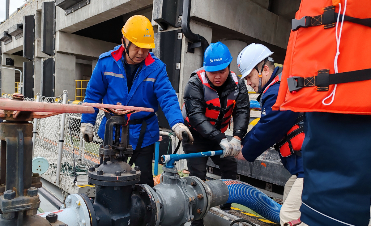 為確保蘭溪油庫順利完成首次進(jìn)油,浙石油銷售公司靠前指揮、統(tǒng)籌謀劃,提前編制進(jìn)油方案,組織油庫作業(yè)人員反復(fù)實(shí)地演練,完善安全風(fēng)險分析及評估,落實(shí)各類應(yīng)急處置方案,逐項(xiàng)檢查復(fù)核各環(huán)節(jié)。作業(yè)當(dāng)天,現(xiàn)場人員專業(yè)高效完成取樣計量、油品化驗(yàn)、設(shè)備檢查、閥門確認(rèn)等流程,嚴(yán)陣以待迎接首輪油的抵達(dá)。