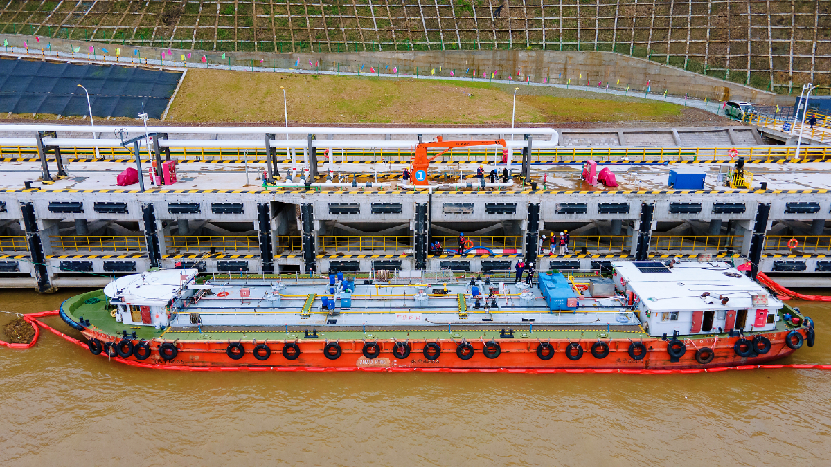 “一切檢查完畢,具備接卸條件!” “開始卸油!”3月6日上午10時48分,坐落于蘭溪市蘭江畔的浙石油蘭溪油庫內(nèi),隨著進(jìn)油現(xiàn)場總指揮一聲令下,油庫碼頭正式啟泵,“兆平6666”油船466噸柴油沿著配套管道緩緩注入油庫D01儲罐。這是該油庫具備運(yùn)營資質(zhì)以來首次進(jìn)油,有力開創(chuàng)油庫運(yùn)營新局面,奮力奪取一季度“開門紅”。
