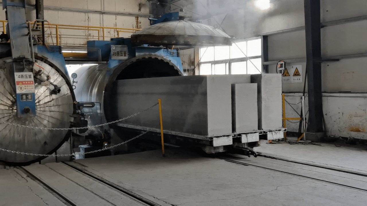 加入項目捕集的二氧化碳燒制的加氣砌塊磚正在出釜。 張威 攝